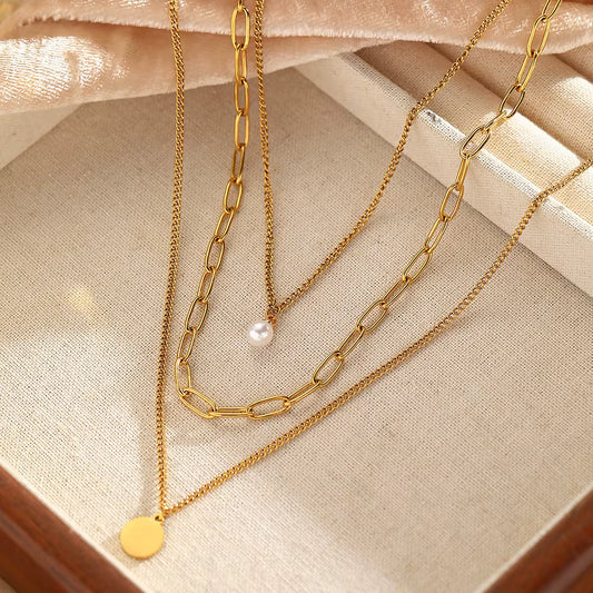 Gold Layered Chain Necklace with Disc Pendants – 3-Layer Design