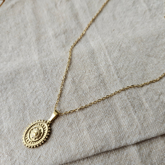 Gold Sun Medallion Pendant Necklace – Vintage-Inspired Design