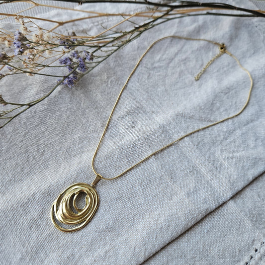 Gold Abstract Circle Pendant Necklace – Sculptural Design